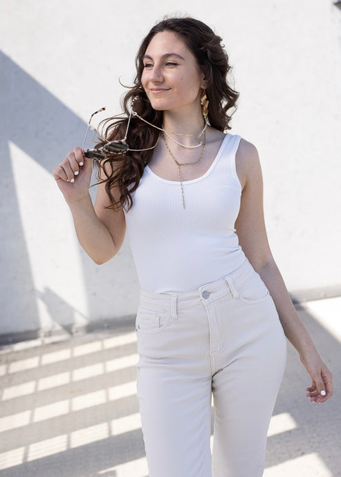 Geripptes Basic Top | Weiß