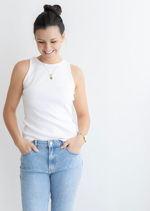 Geripptes Tanktop Til:da Weiß & Pink | Senses.The Label